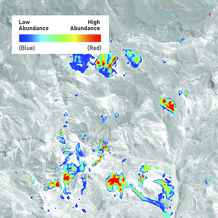Detect 20+ alteration minerals over 1000s to 10,000s of km2.